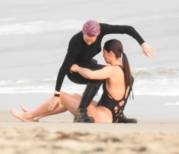 Megan Rapinoe และ Sue Bird เปลือยท่อนบนบนชายหาด